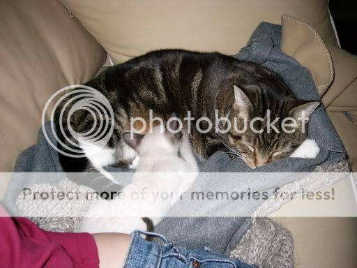 Latte said Mao posted a video of a kitten nursing at his big brother. Well I figured I'd share just how big and tough Latte was when he was a kitten. Yup, that's me, and that's him nursing.